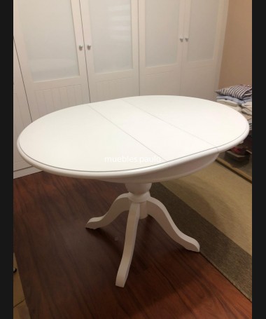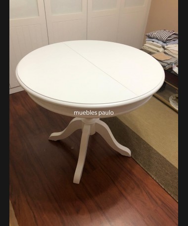 - Mesa de comedor modelo TM0009, redonda y extensible blanca, hecha a medida