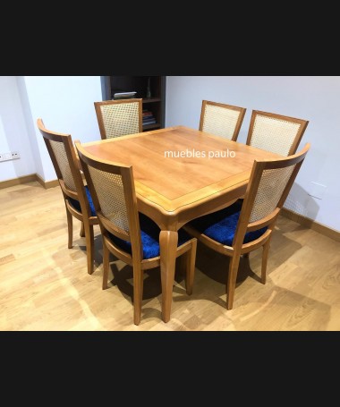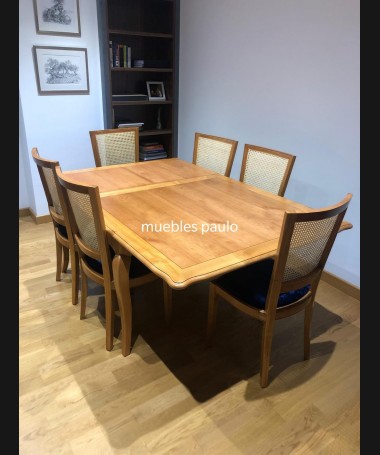 - Mesa de comedor modelo TM0014, en madera de cerezo en color natural barnizado en mate, extensible, de estilo clásico hecha a medida