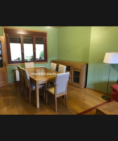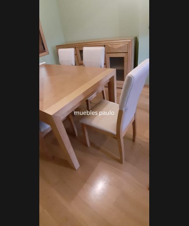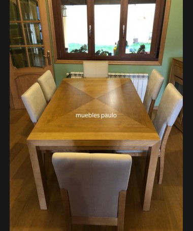 - Mesa de comedor modelo TM0018, en madera de castaño, en acabado color roble, extensible, hecha a medida
