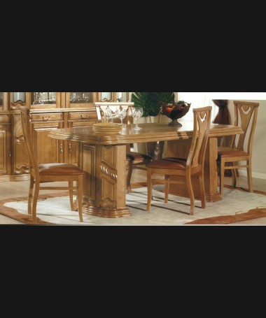 - Mesa de comedor modelo PM0003, de estilo clásico hecha a medida, en madera maciza de castaño tallada, extensible