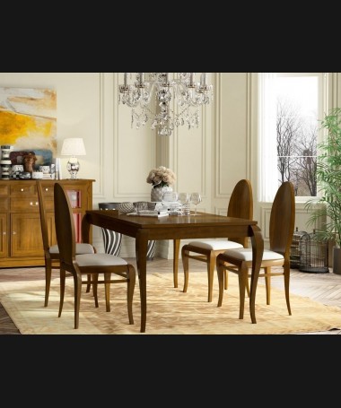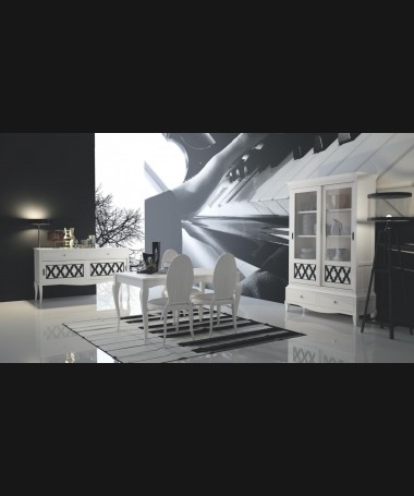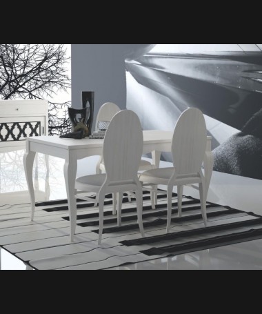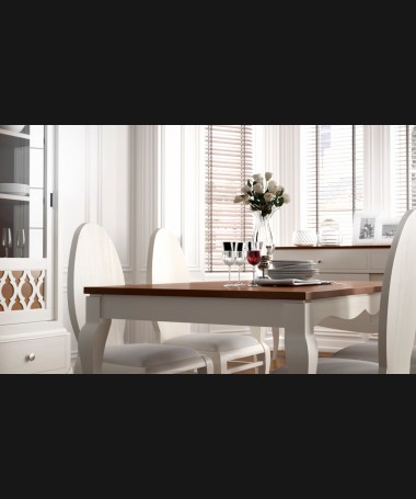 - Mesa de comedor modelo PM0007, de estilo clásico hecha a medida, de madera en acabado decapado blanco