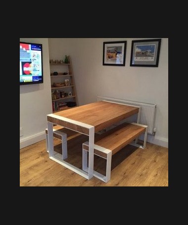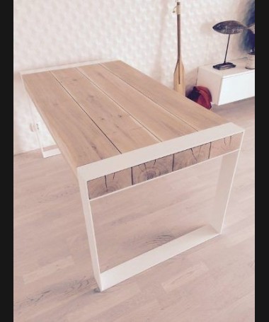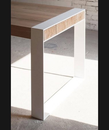 - Mesa de comedor modelo PM0014, de estilo moderno hecha a medida, en madera y con las patas metálicas lacadas en blanco