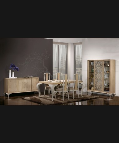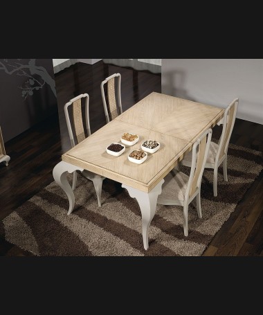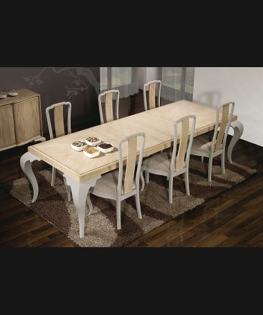 - Mesa de comedor modelo PM0018, de estilo moderno hecha a medida, en madera y con las patas lacadas, extensible