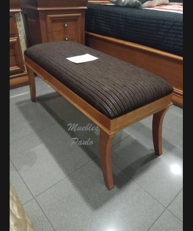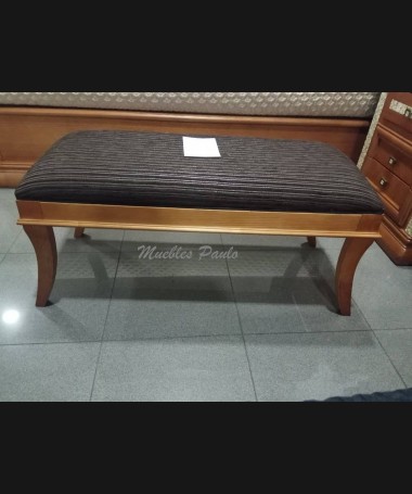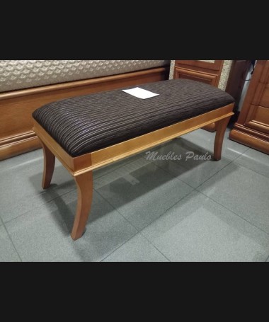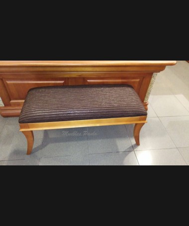 - Banqueta modelo ES0044, de estilo clásico hecha a medida, en madera de castaño tapizada en tela marrón. De L98 x F41 x A45 cm