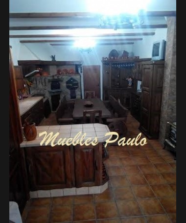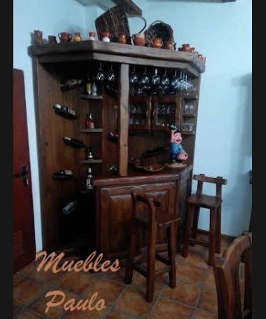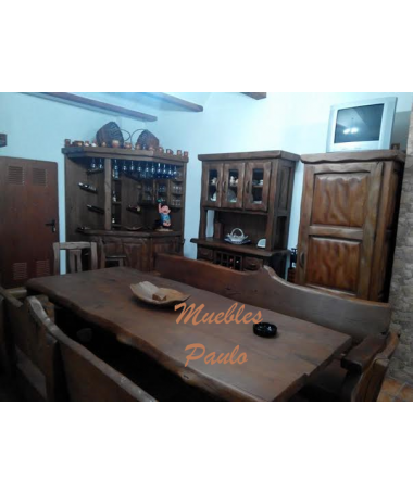 - Mueble bar modelo TMB0005, de estilo rústico hecho a medida, en madera maciza de castaño en acabado envejecido, con las banquetas a juego integrada en una cocina