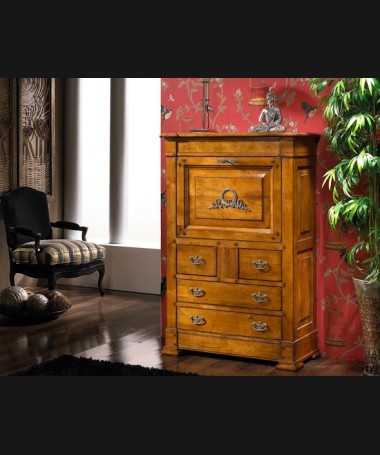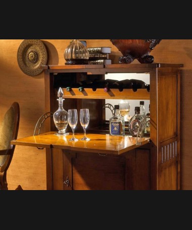 - Mueble bar modelo PMB0011, de estilo clásico hecho a medida, en madera de cerezo, en acabado efecto anticuario