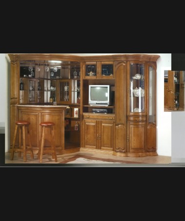 - Mueble bar modelo PMB0015, de estilo clásico hecho a medida, en madera maciza de castaño (Disponible en diferentes medidas y acabados, consultar precios)
