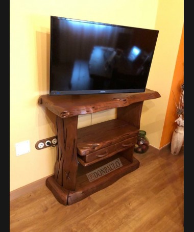 - Mesa de televisión rústica modelo TRU0005, de estilo rústico hecho a medida, en madera en acabado envejecido, con dos cajones y los tiradores de madera (Disponible en diferentes medidas y acabados, consultar precios)
