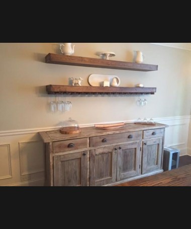 - Aparador rústico modelo PRUAP0004, de estilo rústico hecho a medida, en madera de castaño envejecida, con dos baldas encima a juego