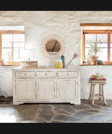 - Aparador rústico modelo PRUAP0006, de estilo rústico hecho a medida, en madera en acabado decapado blanco envejecido