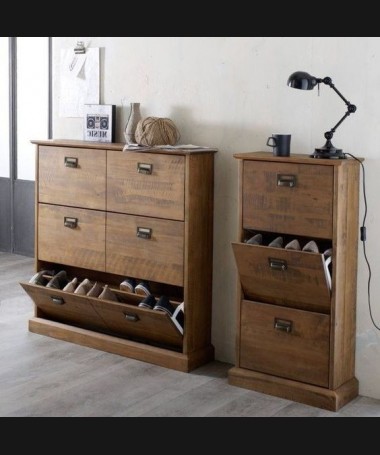 - Zapatero rústico modelo PRUAP0008, de estilo rústico hecho a medida, en madera en acabado envejecido, con 3 cajones zapateros abatibles