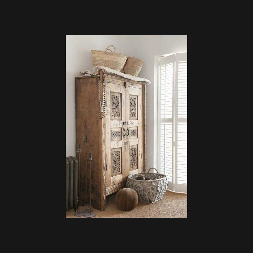 - Armario rústico modelo PRUAR0006, de estilo rústico hecho a medida, en madera tallada envejecida, con el interior personalizado