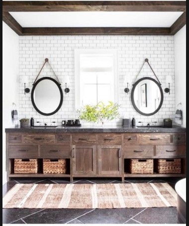 - Mueble de baño rústico modelo PRUBA0005, de estilo rústico hecho a medida, en madera en acabado envejecido, compuesto por mueble de baño doble