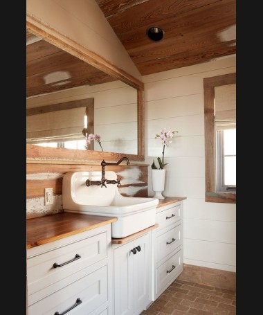 - Mueble de baño rústico modelo PRUBA0007, de estilo rústico hecho a medida, lacado en blanco con espejo de madera a juego y pilón