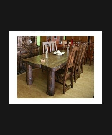 - Comedor rústico modelo PRUCO0001, de estilo rústico hecho a medida, en madera maciza de castaño envejecido, compuesto por mesa, sillas y alacena a medida