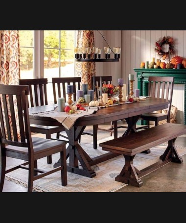 - Comedor rústico modelo PRUCO0008, de estilo rústico hecho a medida, en madera, compuesto por mesa, sillas y banco