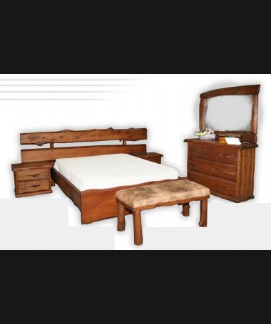 - Dormitorio rústico modelo PRUDO0003, de estilo rústico hecho a medida, en madera maciza de castaño francés. compuesto por cama, dos mesitas, cómoda y espejo