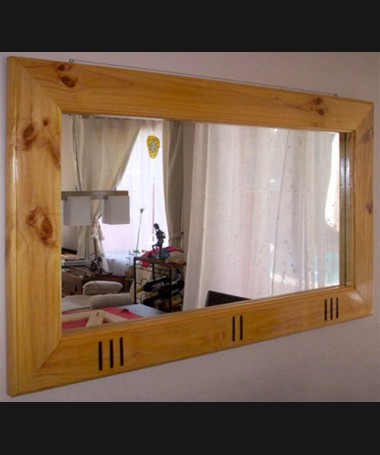 - Espejo rústico modelo PRUES0009, de estilo rústico hecho a medida, en madera en color natural con detalles en negro