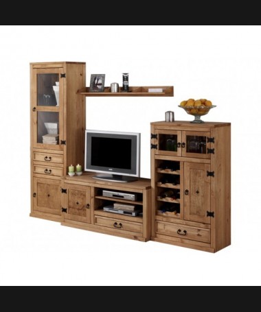 - Salón rústico modelo PRUSA0002, de estilo rústico hecho a medida, en madera en acabado envejecido con detalles de forja negra