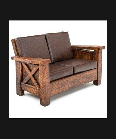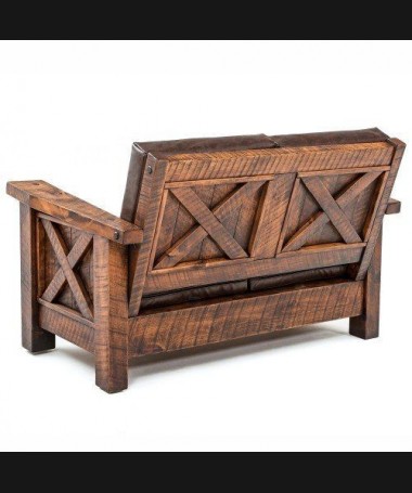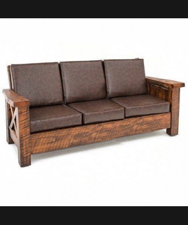 - Sofá rústico modelo PRUSO0003, de estilo rústico hecho a medida, en madera maciza en acabado envejecido, tapizado en tela de microfibras de fácil limpieza