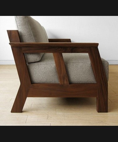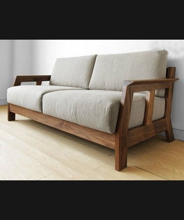 - Sofá rústico modelo PRUSO0009, de estilo rústico hecho a medida, en madera en acabado envejecido tapizado en tela de microfibras de fácil limpieza