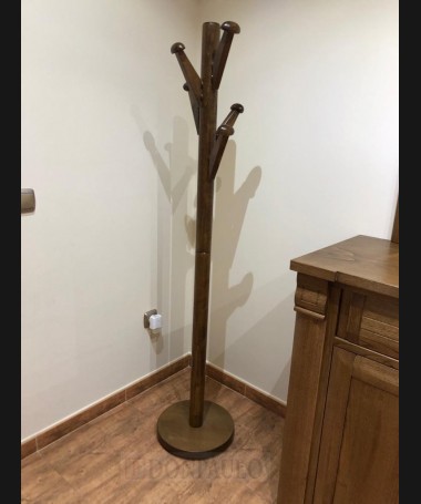 - Perchero modelo TPE0003, en madera de castaño en acabado castaño viejo con la beta oscurecida, de estilo clásico
