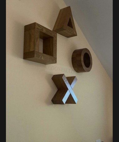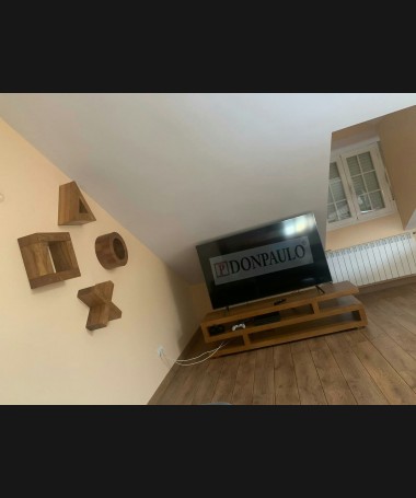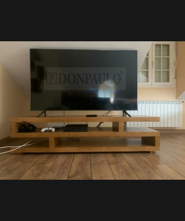 - Salón modelo TSA0021, de estilo moderno hecho a medida, en madera de castaño en color tabaco, compuesto por mueble de televisión y 4 estanterías de diseño