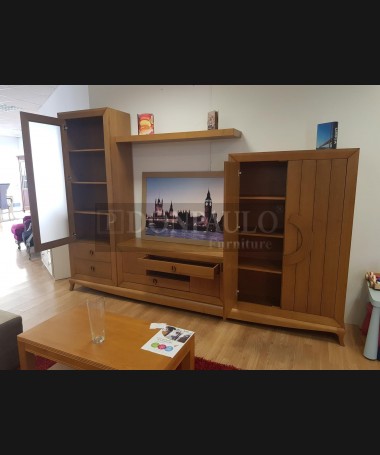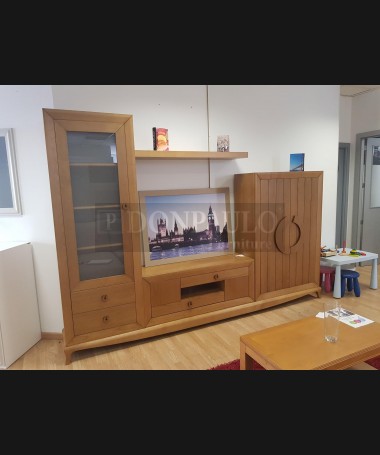- Salón modelo One ESA0040, de estilo moderno hecho a medida, en madera de castaño en color alemán con sombras, de L300 x F40 x A210 cm, compuesto por: