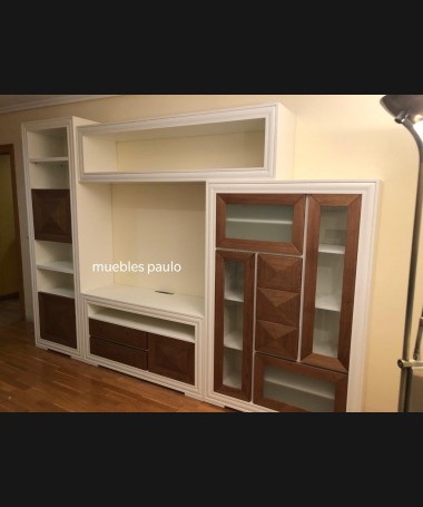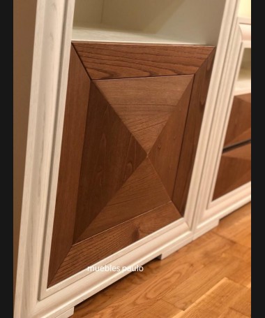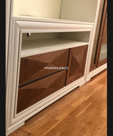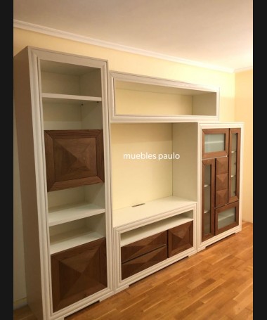 - Salón modelo TSA0003, en madera de castaño los frentes y decapado en blanco la estructura, hecho a medida