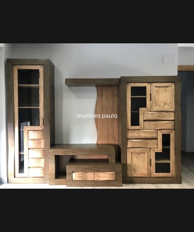 - Salón modelo TSA0005, en madera de castaño en estilo rústico, hecho a medida