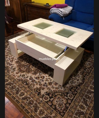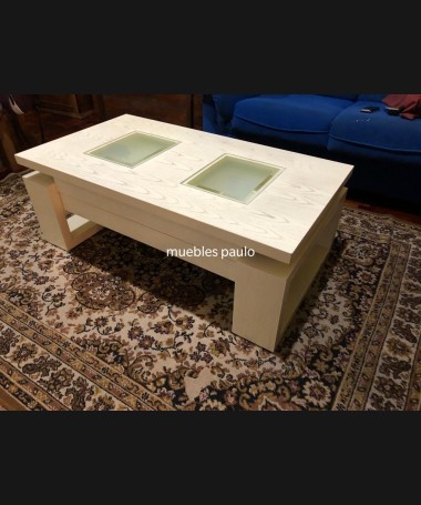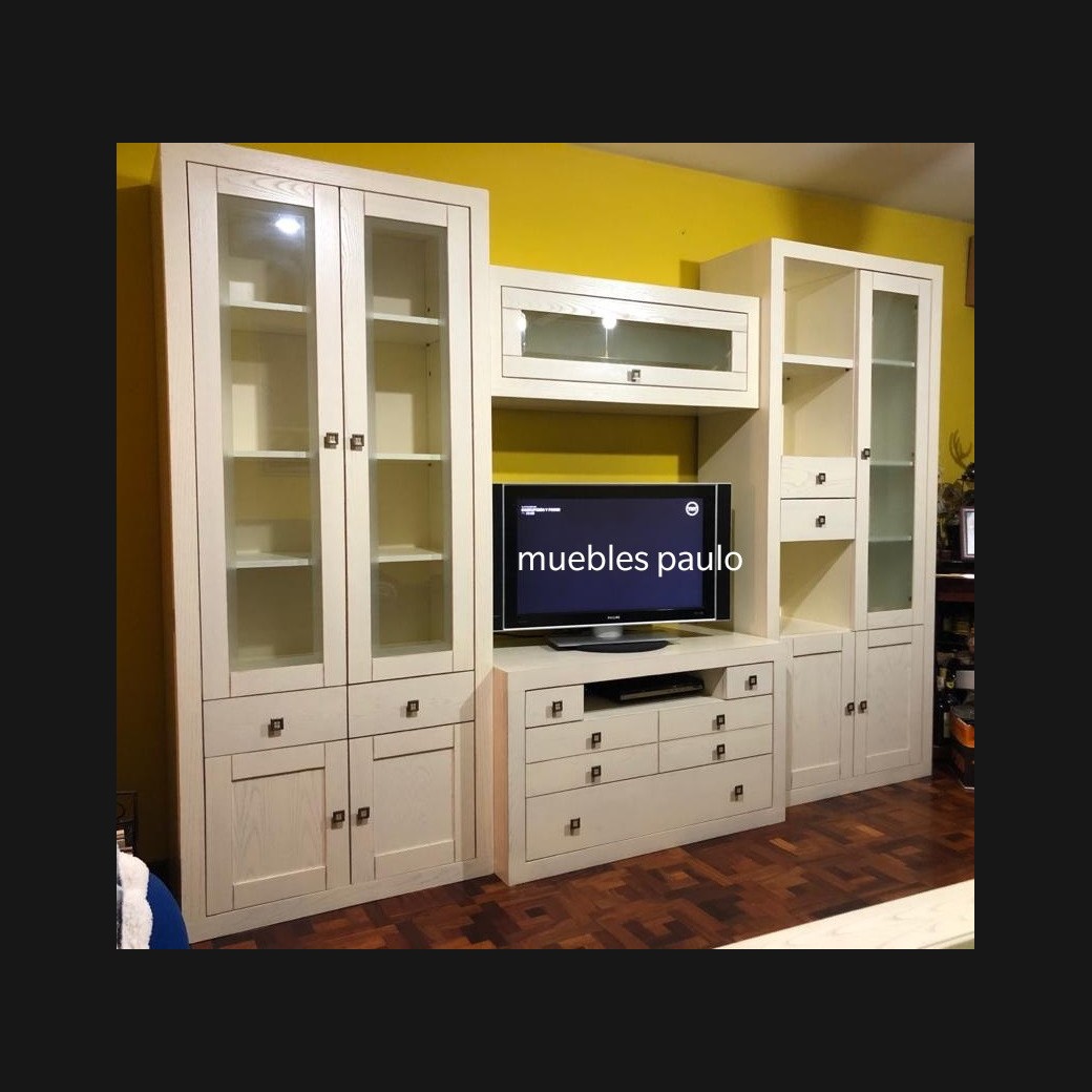 - Salón modelo TSA0008, en madera de castaño en acabado decapado blanco con la beta desgastada, hecho a medida