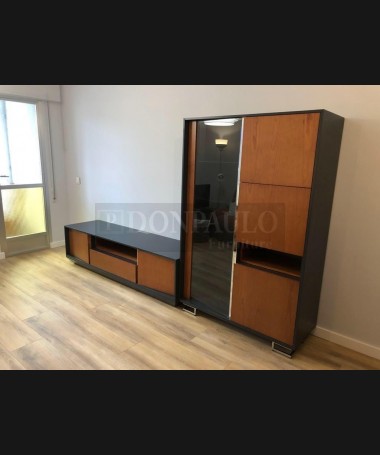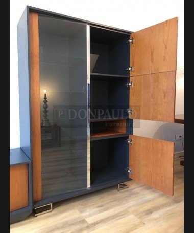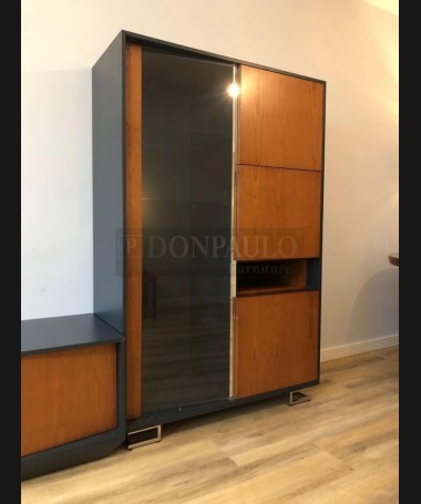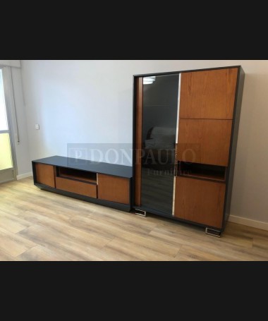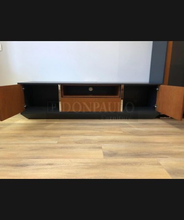 - Salón modelo TSA0052, de estilo moderno hecho a medida, en madera en acabado cerezo y negro