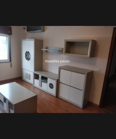 - Salón modelo TSA0010, en blanco y color champagne, hecho a medida, con mesa de centro a juego