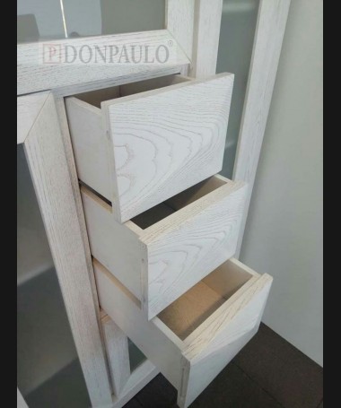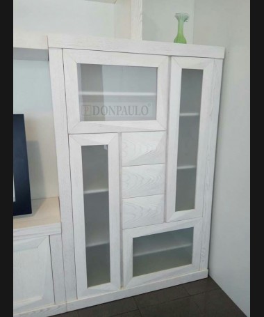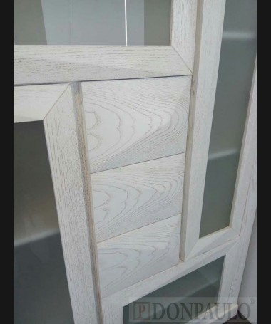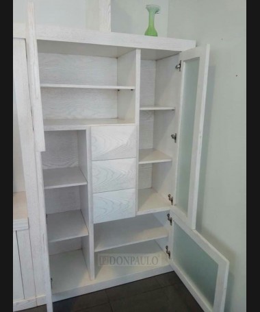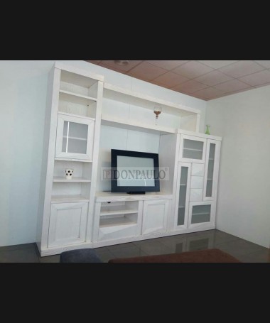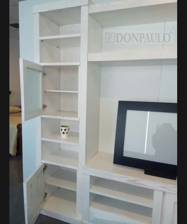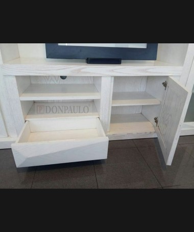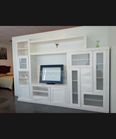 - Salón modelo ESA0007, en madera de castaño en acabado decapado blanco con la beta marrón, de L300 x F45 x A220 cm hecho a medida