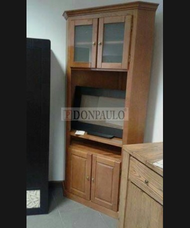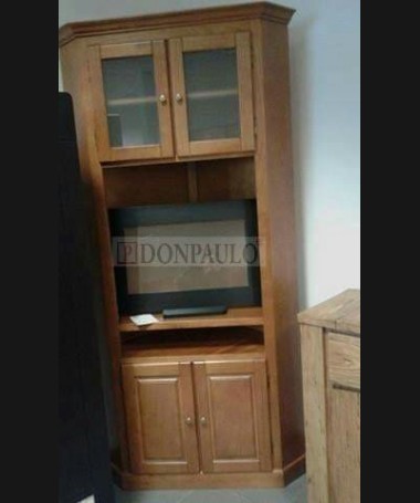 - Mueble de televisión en esquina modelo ESA0026, en madera de castaño en color alemán, de L70 x F70 x A208 cm, hecho a medida