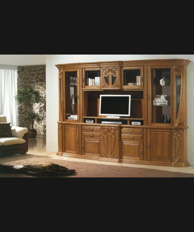 - Salón modelo PSA0003, de estilo clásico hecho a medida, en madera maciza de castaño tallada