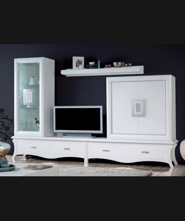 - Salón modelo PSA0016, de estilo moderno hecho a medida, lacado en blanco mate con detalles en gris plata