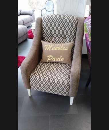 - Sillón modelo ES0008, de estilo moderno hecho a medida, tapizado en tela estampada de fácil limpieza, con las patas lacadas en blanco. De L70 x F80 x A102 cm, con el cojín incluido