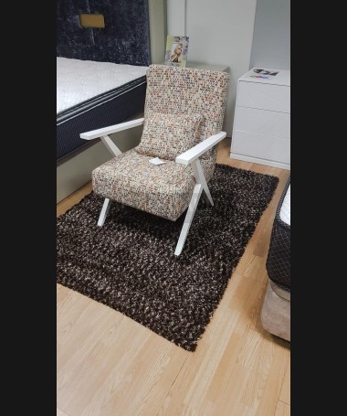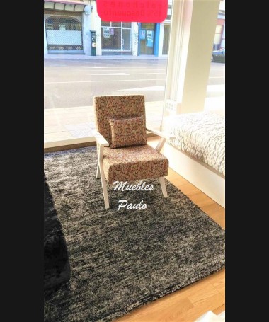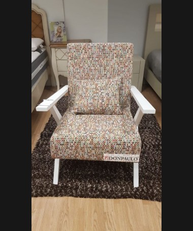 - Sillón modelo ES0021, de estilo moderno hecho a medida, lacado en blanco mate, y tapizado en tela estampada de colores. De L65 x F60 x A85 cm