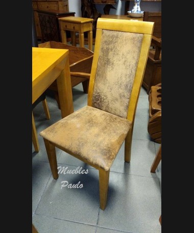- Silla modelo ES0028, de estilo moderno, en madera de castaño en color alemán, tapizada en tela de microfibras de fácil limpieza marrón. De L48 x F50 x A100 cm