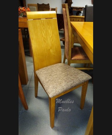 - Silla modelo ES0037, de estilo moderno, de madera de castaño en acabado color aleman, tapizada en tela marrón. De L47 x F50 x A198 cm