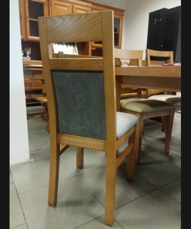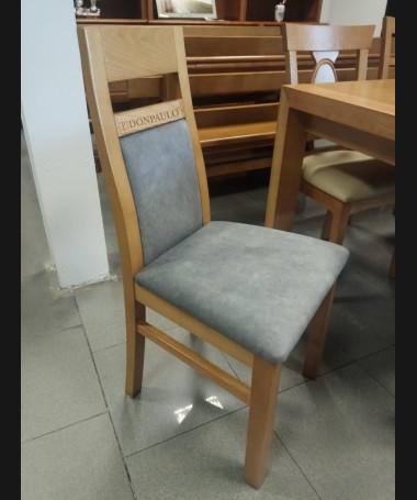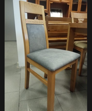 - Silla modelo ES0046, de estilo moderno, en madera de castaño color roble, tapizada en tela de microfibras de fácil limpieza gris, de L46 x F50 x A96 cm