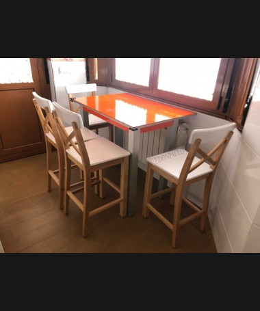 - Taburete alto modelo TS0033, de estilo moderno, en madera, con la tapa y el respaldo decapados en blanco