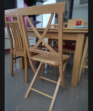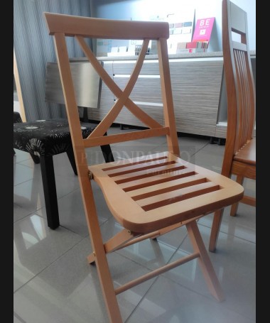- Silla plegable modelo ES0062, en madera color natural. De 43 x F48 x A90,5 cm