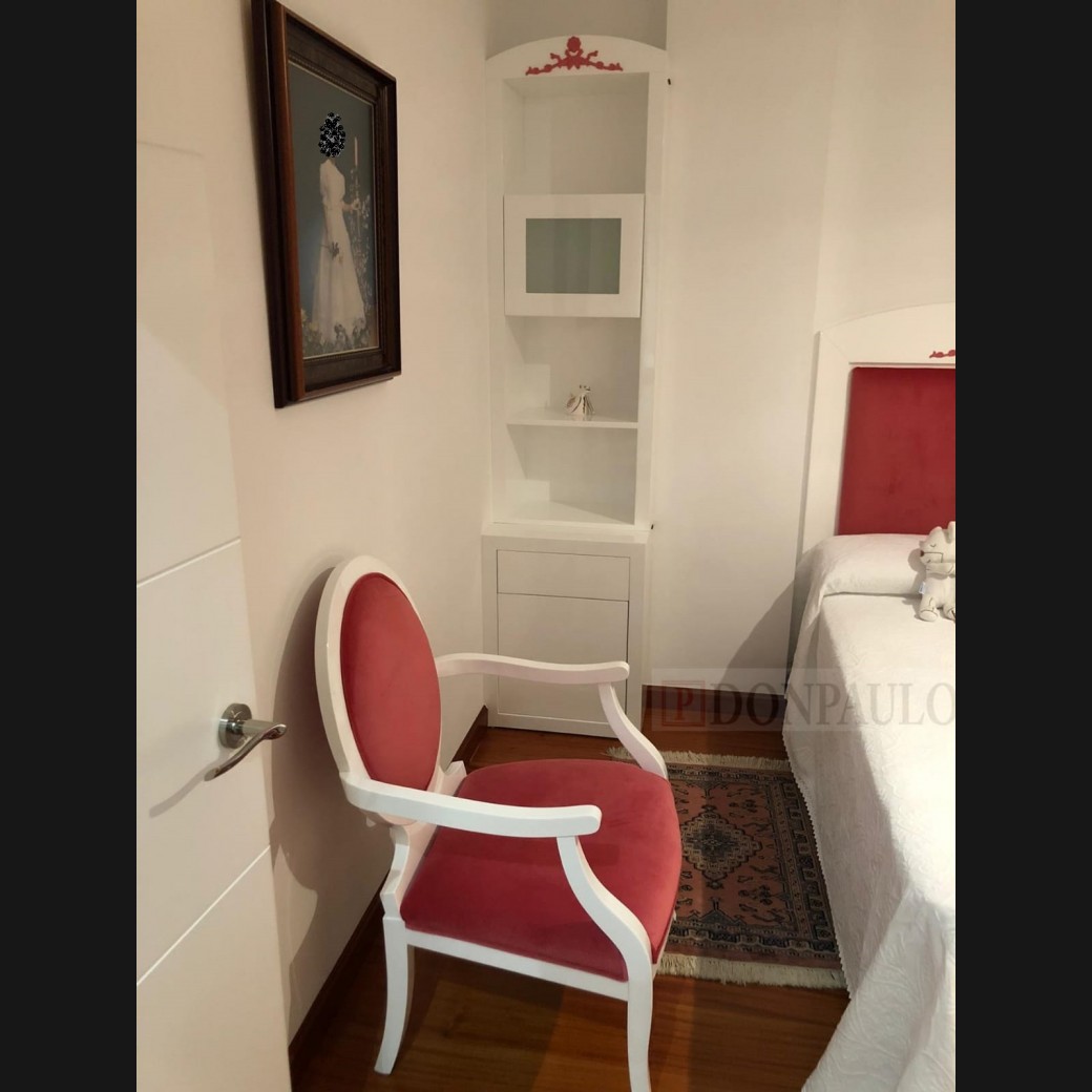 - Sillón modelo TS0011, en lacado blanco mate tapizado en granate