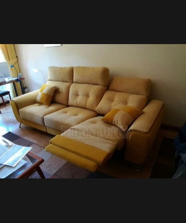 - Sofá modelo León TSO0032, de estilo moderno hecho a medida, de 3 plazas, con asientos relax a motor, cargador para el móvil y lámpara led, tapizado en tela de microfibras de fácil limpieza, con las patas altas
