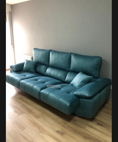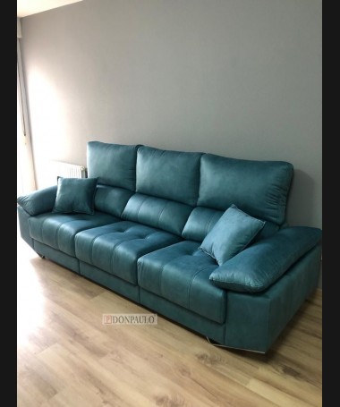 - Sofá modelo Ofir TSO0035, de estilo moderno hecho a medida, tapizado en tela de fácil limpieza azul turquesa, con los asientos extraíbles