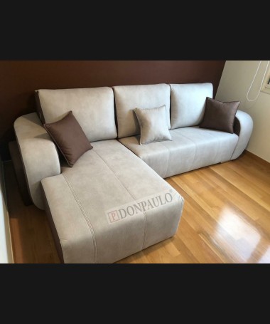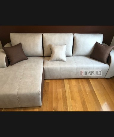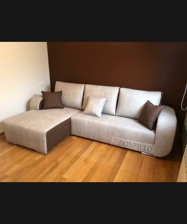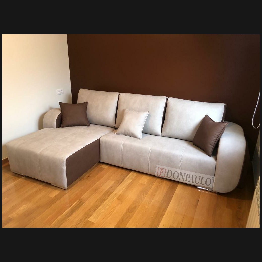- Chaisselonge modelo Onda TSO0044, de estilo moderno hecha a medida, tapizado en tela de microfibras de fácil limpieza de color beige con detalles color chocolate