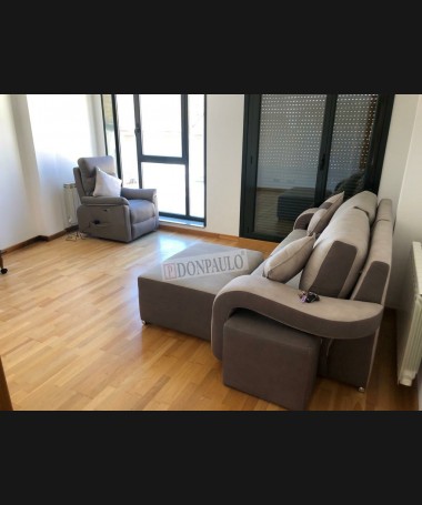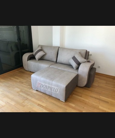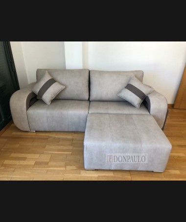 - Sofá con puff modelo Onda TSO0057, de estilo moderno hecho a medida, tapizado en tela de microfibras de fácil limpieza gris con un puff independiente