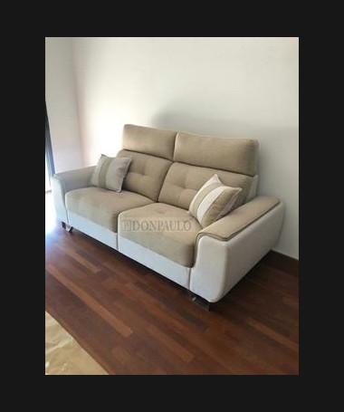 - Sofá modelo León TSO0064, de estilo moderno hecho a medida, con asientos de viscolatex, tapizado en tela de fácil limpieza, con los asientos fijos y patas de acero inoxidable cromado altas